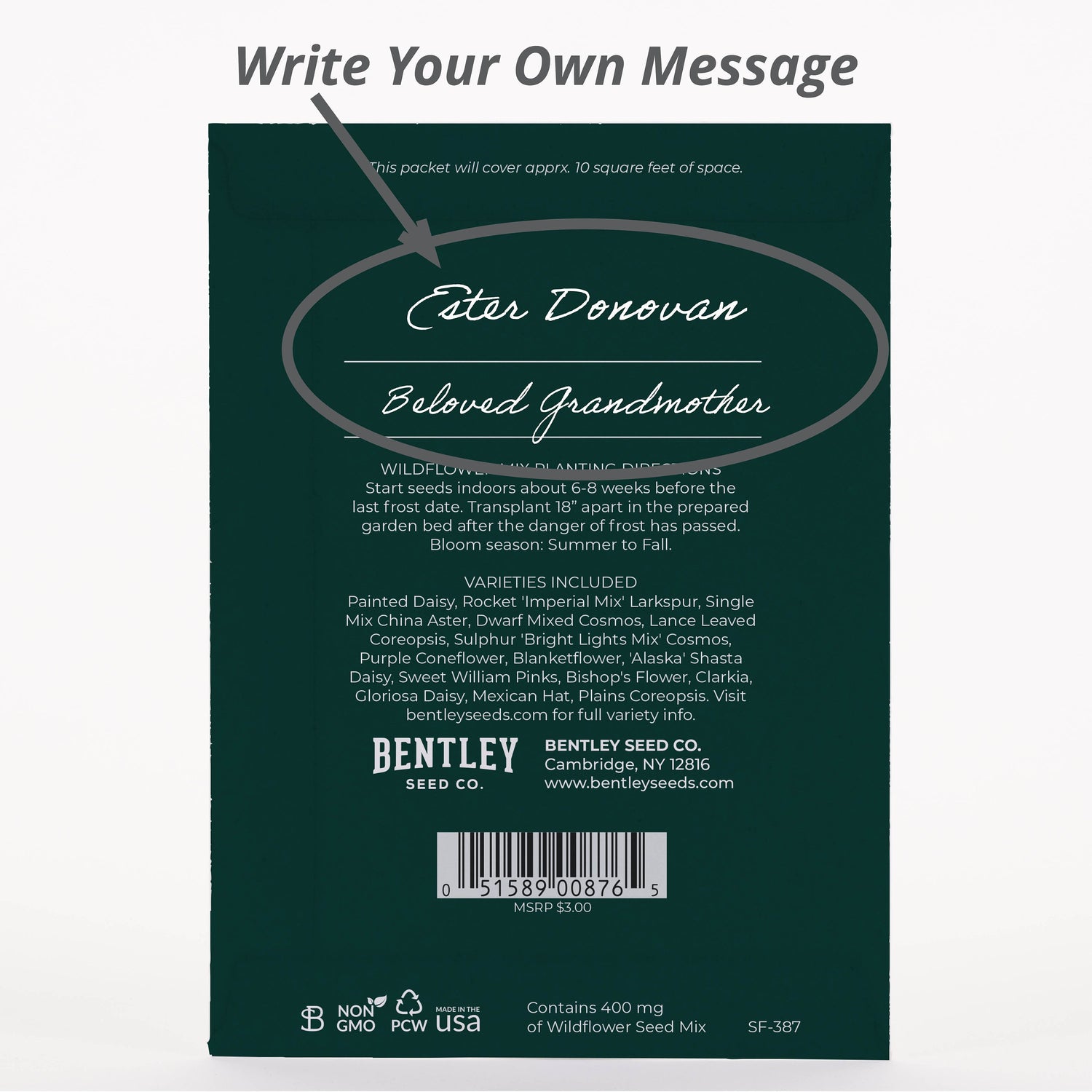 Use the space provided on the back of the packet to write your own personalized message, or even place a label sticker with your preprinted logo and contact info on it.
